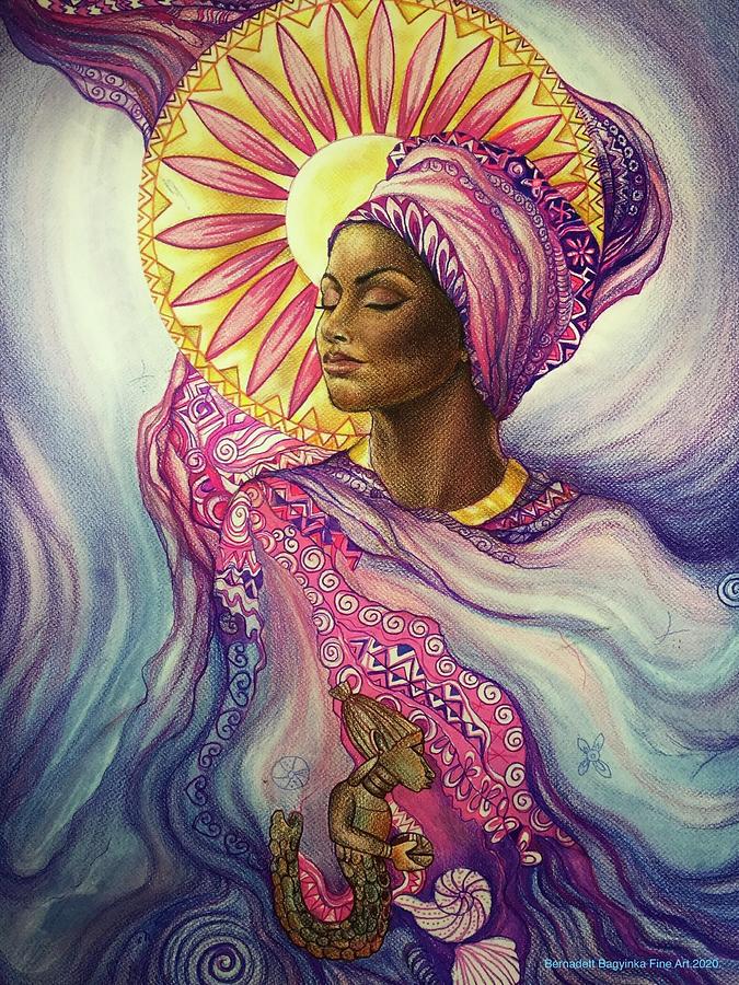 Obba è femminile e sensuale, ma è anche forte, temuta, energica, viene considerata più forte di molti Orisha maschi. L’unico che è riuscito a sconfiggerla in battaglia è stato Oggun. Il suo nome deriva dallo Yorùbá Òbbá (Òbè: zuppa – Obá: re), letteralmente “Lei della zuppa del re”.